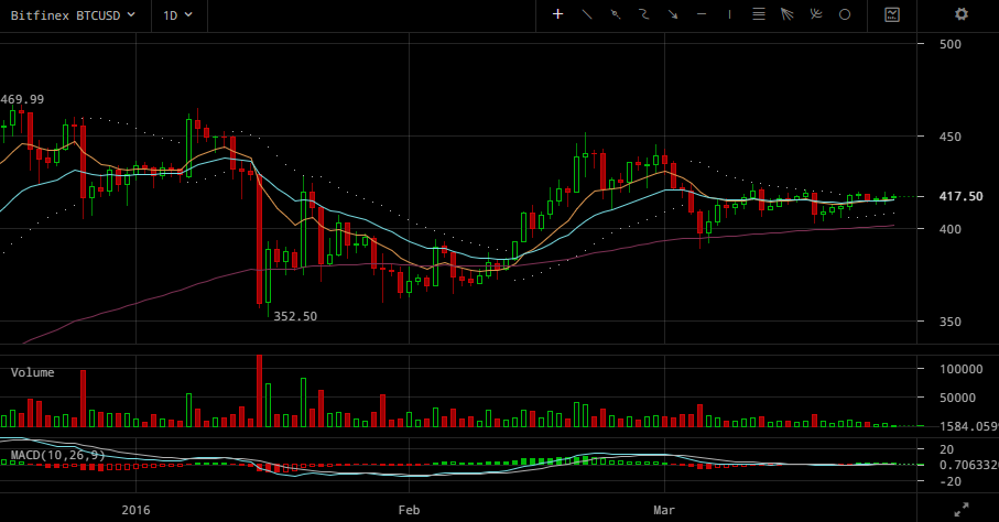 This week, Bitcoin consolidated its price having reached $415 at the moment of writing, compared to $405 last Saturday. It peaked on Wednesday at $418. Generally, the week has been calm and peaceful for Bitcoin.