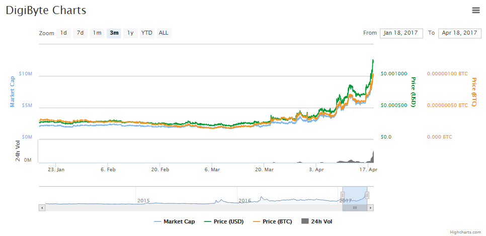 DigiByte was launched in 2014. It positions itself as a professional and transparent decentralized cryptocurrency developed to tackle some drawbacks of Bitcoin and Litecoin. Now, thanks to the SegWit activation, DigiByte’s price has grown by 50% over a few days. With market cap over $9m, the coin sits in the 58th place.